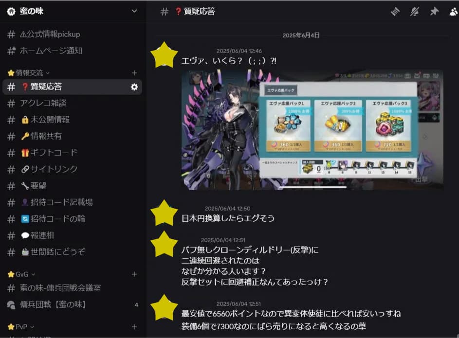 ・初心者歓迎、上位ギルド(蜜の味)への優先加入・共有の Discord や メンバー専用チャット で優先キャラや装備など疑問を解消!